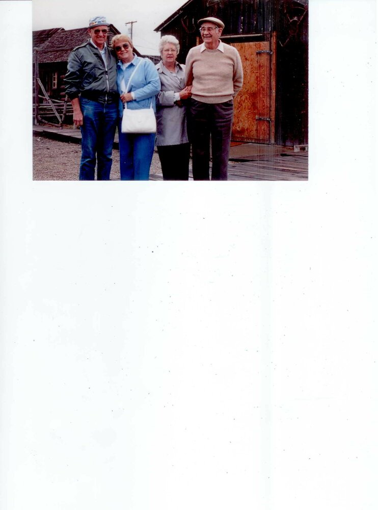 The world became less bright with the passing of my favorite uncle, Bob. He was one of a kind and much loved and appreciated by me and my family. Bob and Jackie and my parents, Howard and Ruth (Jackie's sister) were great friends and had such fun together during many excursions and visits. I am attaching a photo that was taken of the four of them in Heber, Utah while there to ride the "Heber Creeper" train.